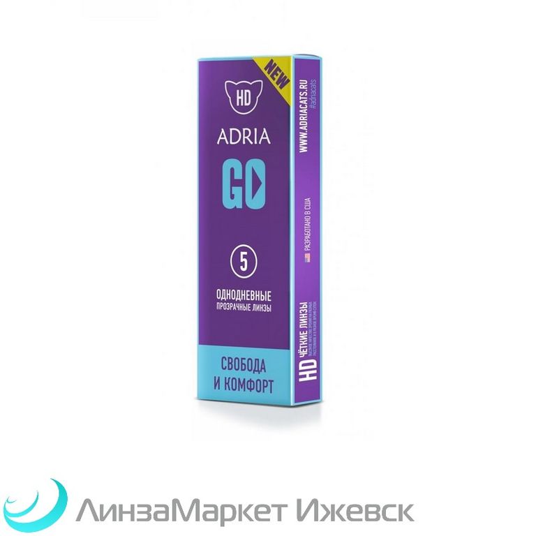 Четкое зрение на 12 часов. Линзы ADRIA GO созданы по американской запатентованной технологии High Definition vision. Асферический дизайн передней поверхности линзы обеспечивает повышенную контрастность и ясность зрения в любое время суток, даже в сумерках. Благодаря UV-защите, Ваши глаза будут защищены от вредного солнечного воздействия. Линзы ежедневной замены не требуют ухода, каждое утро у вас новая, свежая пара линз.