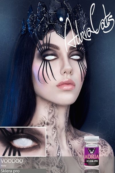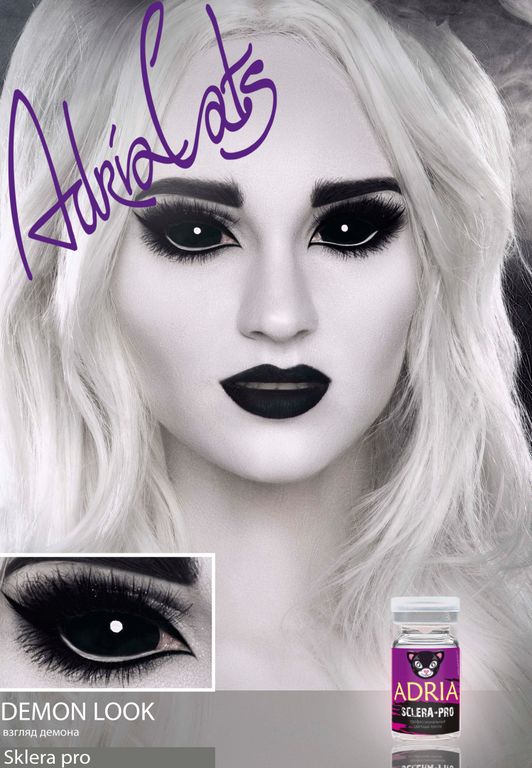 Линзы, которые покрывают весь глаз полностью, как радужку, так и белок. Если нужно произвести сногшибательный эффект на вечеринке, сделать оригинальную фотоссесию, либо на время превратиться в персонажа фильма ужасов или фэнтази - склеры идеально справятся с этими задачами. За пару минут можно стать демоническим созданием или инопланетянином. А также скопировать образы Леди Гага, Мэрилина Менсона и других музыкантов, славящихся тягой к экстемальным перевоплощениям.