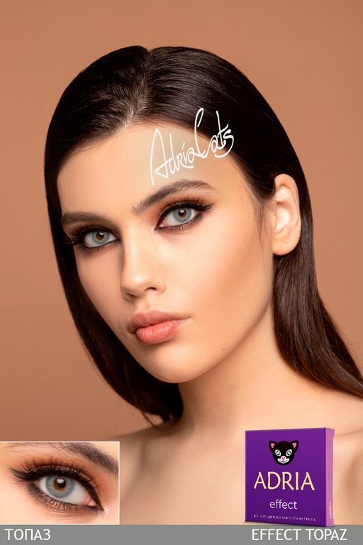 ADRIA Effect - самая новая серия цветных линз для эффектного преображения. Особая система окрашивания линзы разработала специально для темных глаз. Перекрывает родной оттенок и делает глаза цвета кварца, топаза или нежной карамели - всего 6 волшебных оттенков. Увеличенный диаметр 14.5 для полного перекрытия радужки и визуального увеличения. HD-качество зрения.