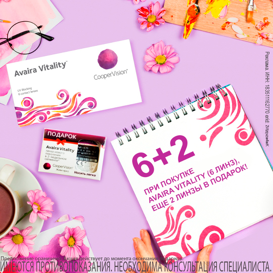 При покупке Avaira Vitality (6 линз) + 2 линзы будут для вас в подарок!