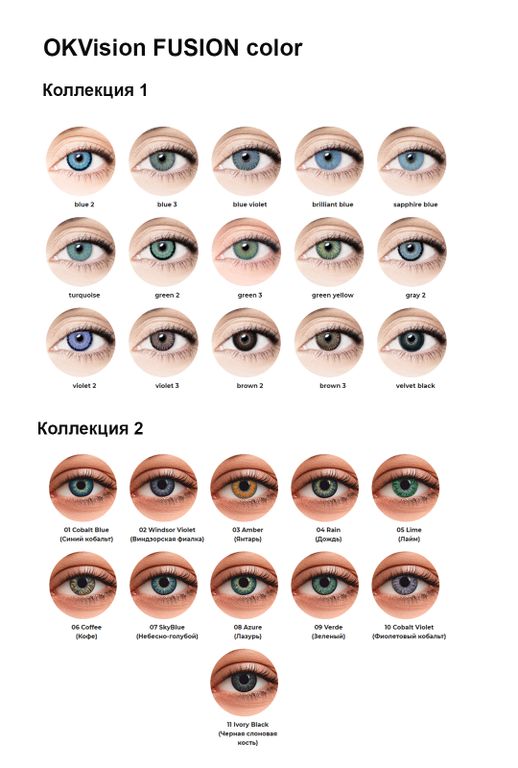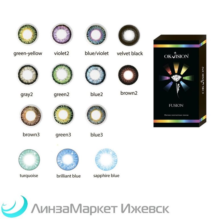 OKVision FUSION color - гидрогелевые цветные мягкие контактные линзы с послойным методом нанесения красителя внутри линз, что позволяет изменить цвет глаз, сохранив естественную глубину взгляда.