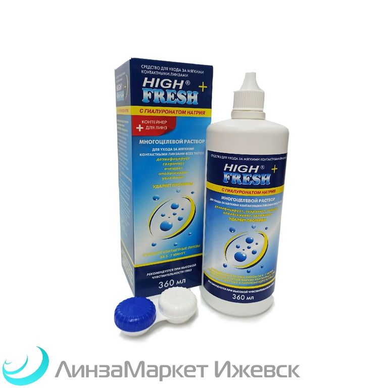 Многоцелевой раствор High Fresh+ (Хай Фрэш Плюс) с гиалуронатом натрия зарекомендовал себя как надежный продукт, способный качественно бороться с протеиновыми отложениями на поверхности линзы, которые скапливаются за период ношения.
