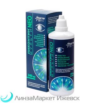 Мультифункциональный раствор для ухода за мягкими (в том числе силикон-гидрогелевыми) и жесткими газопроницаемыми (гибкими) контактными линзами Ликонтин Мульти NEO