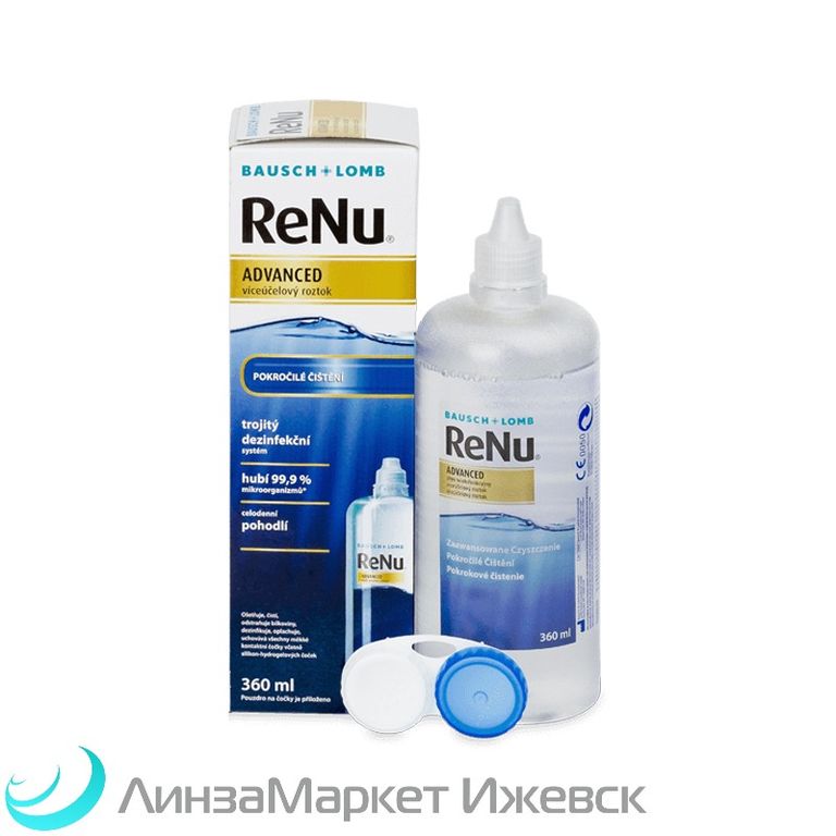 ReNu Advanced - раствор, который предназначен для очистки, удаления белковых отложений, дезинфекции, ополаскивания и хранения всех видов мягких контактных линз.