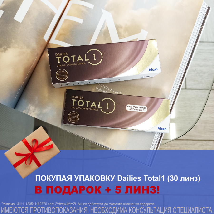 При покупке Dailies Total 1 (30 линз) + 5 линз будут для вас в подарок!